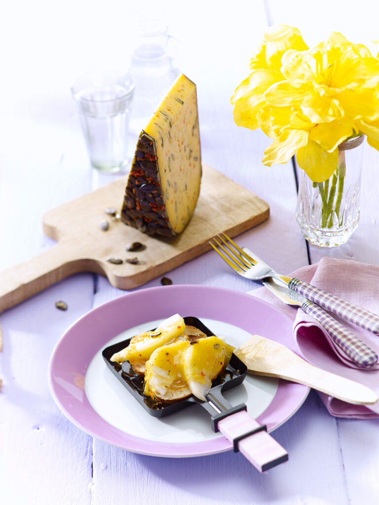 Verwarm de contactgrill. Schil de peren, verwijder het klokhuis en snijd in totaal 24 dunne plakken. Snijd het stokbrood in circa 24 sneetjes. Verdeel de plakken peer op het stokbrood. Leg de plakken kaas over de peer en leg de broodjes onder de grill van de gourmet. Laat in circa vijf minuten smelten. Strijk vervolgens wat honing over de stokbroodjes en serveer direct uit.