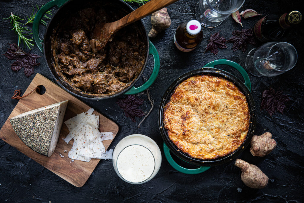 Leg een laagje aardpeer in het bakblik en vervolgens geraspte kaas eroverheen. Voeg vervolgens een laagje knolselderij toe en weer wat geraspte kaas. Herhaal dit tot alle groenten op zijn. Als laatste giet je het ei room mengsel hierover en rasp je de laatste kaas erover, plaats dit in de oven op 160 graden gedurende 45 à 55 minuten